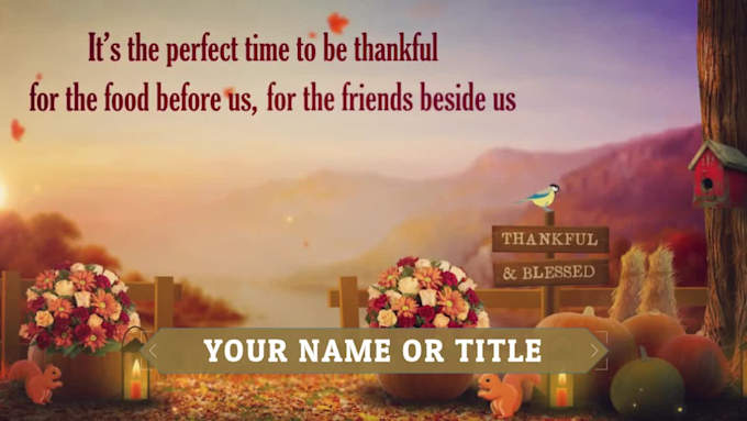 I will make the video of THANKSGIVING wish with a custom message. Please contact me for more detail or you have any question related to gig. The video will be same as in the gig preview. This Video is of Personal use.