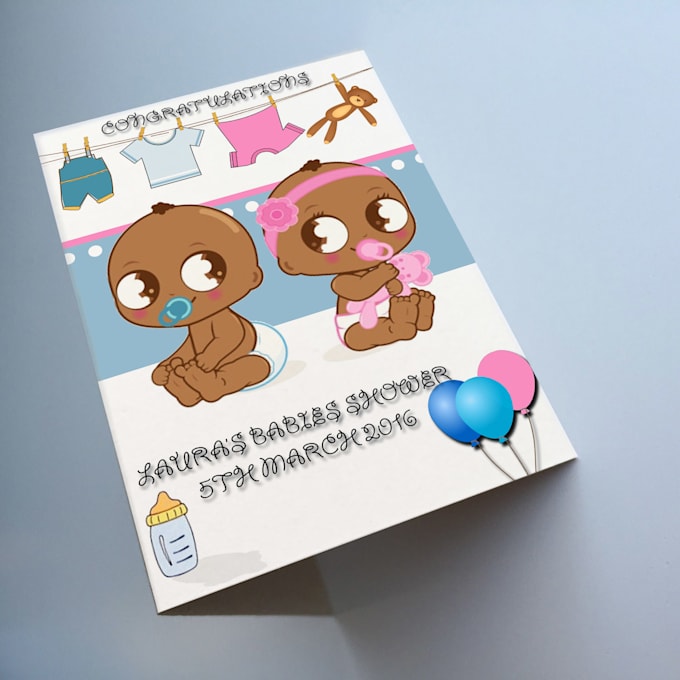 i can design for you any kind of post card for different types of celebration or a baby shower or anything on your mind ,I can also change your real picture or your friend's picture into funny cartoon pictures , you can make it for your friends and print as a greeting cards or post card for any occasion as birthdays or anything else . feel free to be more specific about anything else you need in the design so i can take into consideration to satisfy your needs , if you're not interested for having his name in Arabic , feel free to tell me in which language do you want me to write his name .