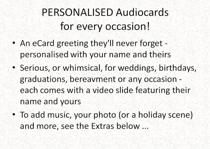 Get a personalised audio/visual greeting card, featuring an award-winning speaker and voice-over artist, for any occasion - birthdays, anniversaries, graduation, engagement ...